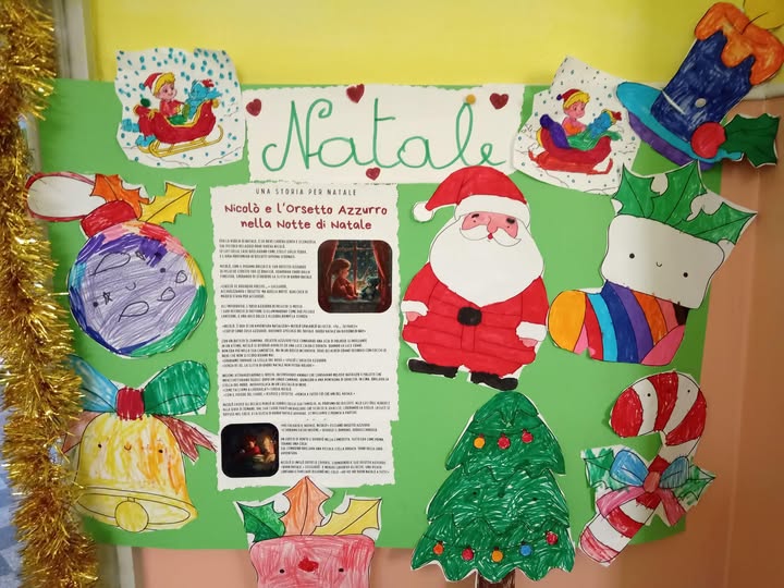 Mattinata con i bambini grandi della scuola dell’infanzia…… dopo aver letto una bellissima storia dal titolo “Nicolò e l’orsetto azzurro nella notte di Natale” i bimbi hanno colorato delle immagini relative alla storia, realizzando un fantastico cartellone. Infine si sono divertiti con dei simpatici giochi.![]()